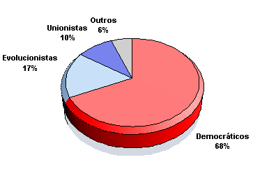 Democráticos 106 deputados democráticos (169 139 votantes no Continente 63% dos votantes e 38% dos recenseados). Em Lisboa, 15 622 votantes; no Porto, 8 599. 45 senadores |