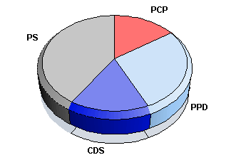 6 402 035 eleitores. 5 483 461 votantes. ·PS: 107 mandatos, 35% ·PPD: 73 mandatos, 24%, ·CDS: 42 mandatos, 16% ·PCP: 40 mandatos, 14%. ·UDP: 1 mandato, 1,7%